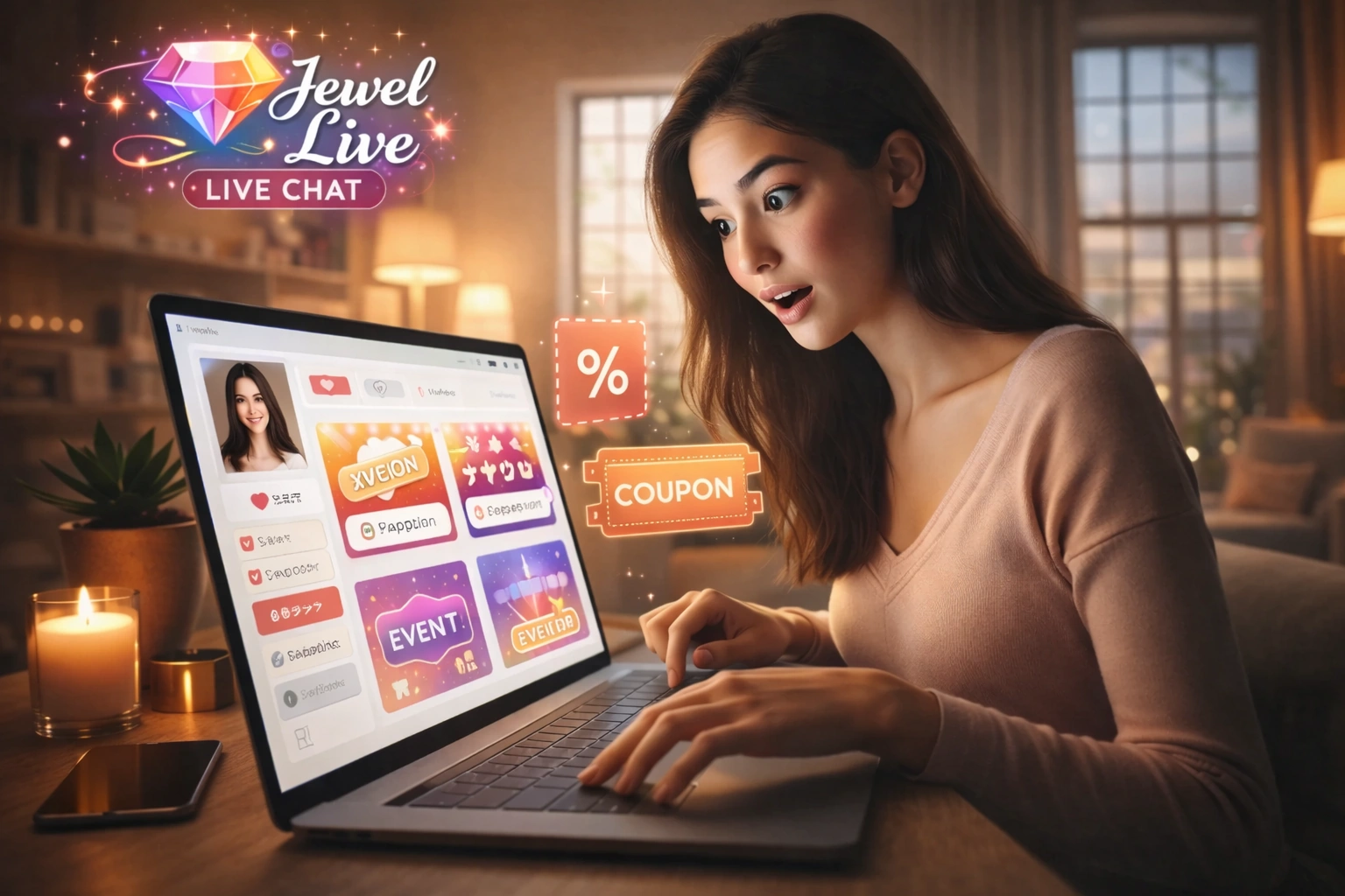 ジュエルライブは、お得なイベントやキャンペーンが豊富なアダルトライブチャットです。上手くタイミングを見計らって遊べば、ポイントの消費を抑えてエロチャットができます。